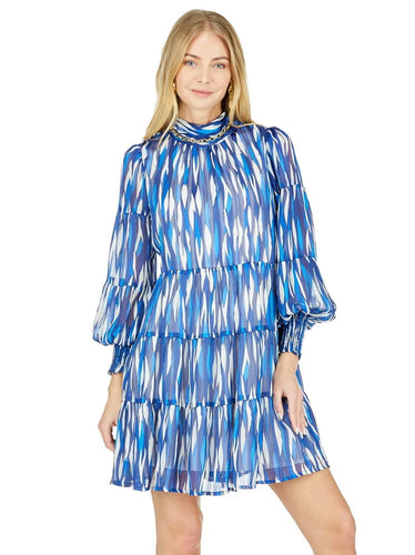 BLUE DROPS NECK TIERED DRESS