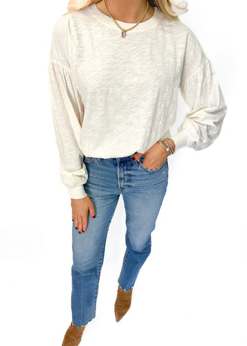 WIDE SHIRRED SLV DROP SHOULDER PULLOVER - PARCHMENT
