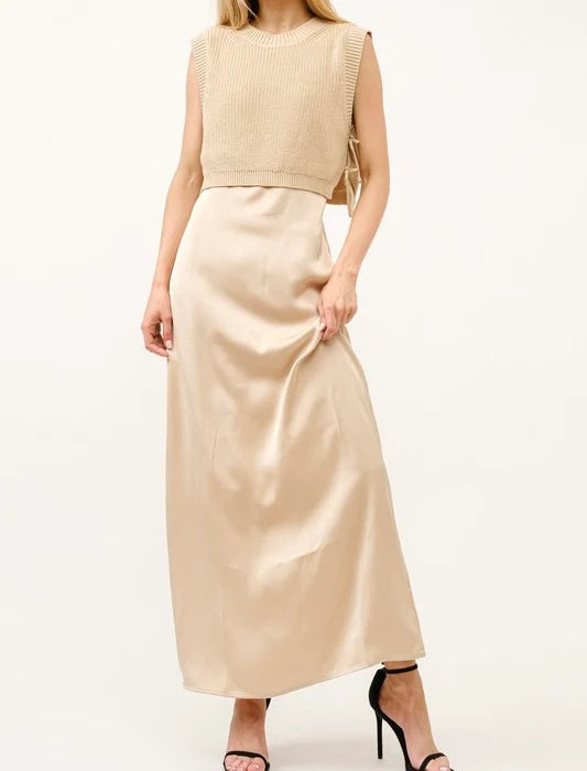 • Load image into Gallery viewer, 2pc Satin Dress w/vest set - Gold
